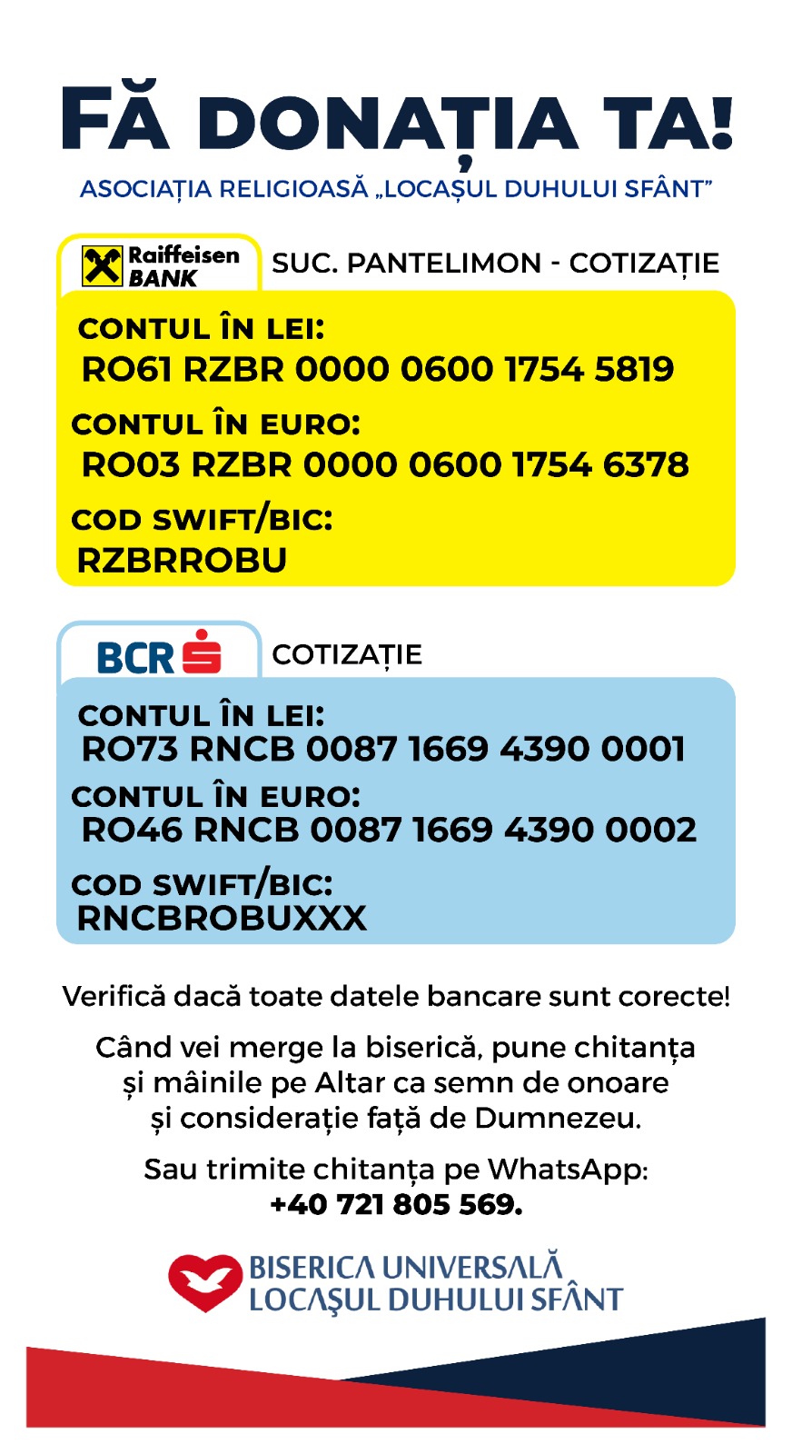 Donaţie prin transfer bancar: