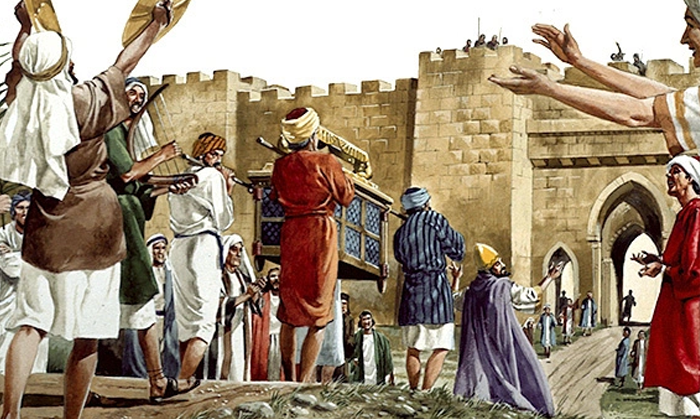 Văzând eroarea pe care a comis-o, David decide să transporte Chivotul așa cum trebuie, și a făcut și mai mult, a sacrificat boi și viței de lapte la fiecare șase pași. Pe tot parcursul drumului mergeau și se opreau pentru a sacrifica. Ne putem imagina cum drumul a devenit mai lung și mai greu!